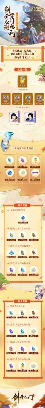 游戏为大家准备了海量的福利,,,包括上线即可获得的全渠道预约礼包、、、、十连抽等福利,,,输入密令“JK666”、、、、“JK888”即可领取紫色弟子,,达到金丹期后还有功法宝箱可领,,,,助力全宗上下实力提升……所有奖励总价值超过648元,,,而邀请好友一起体验,,,,更可以获得额外的奖励哦~