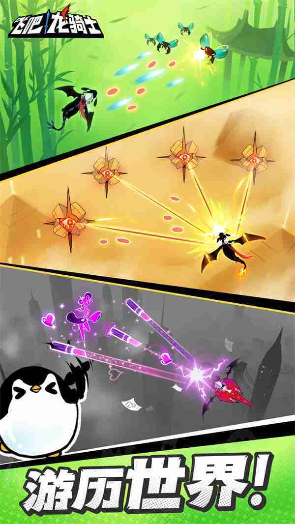 《飞吧龙骑士》是一款集合了飞行弹幕射击、、、、Roguelike要素和挂机养成的休闲手游,,,极具创意的吞食子弹反击玩法,,突破传统飞行射击的刻板限制,,,,带来了独特的爽快清屏体验。。。。
