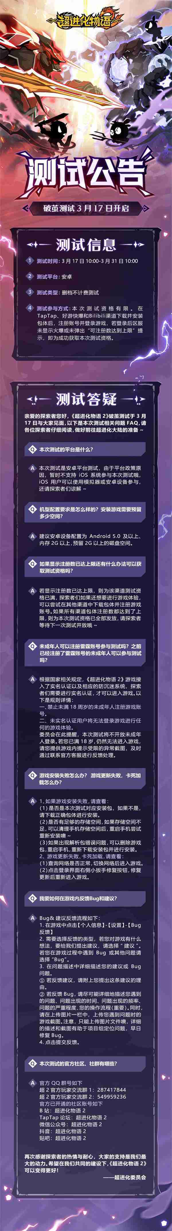 《超进化物语2》首次限号不计费删档测试——「破茧测试」将于3月17日开启,,随我们确认测试细节,,明天迈出踏上超进化大陆的第一步吧!!!